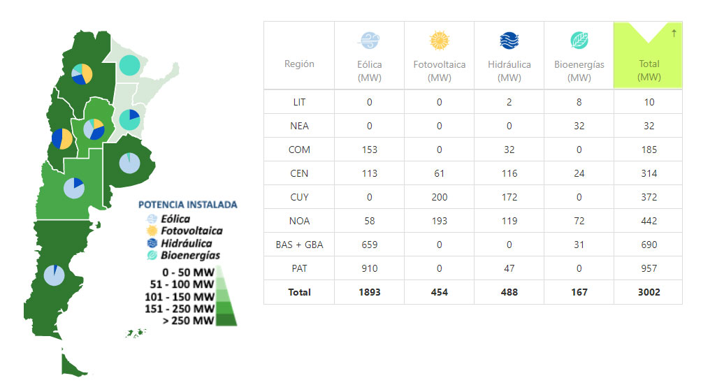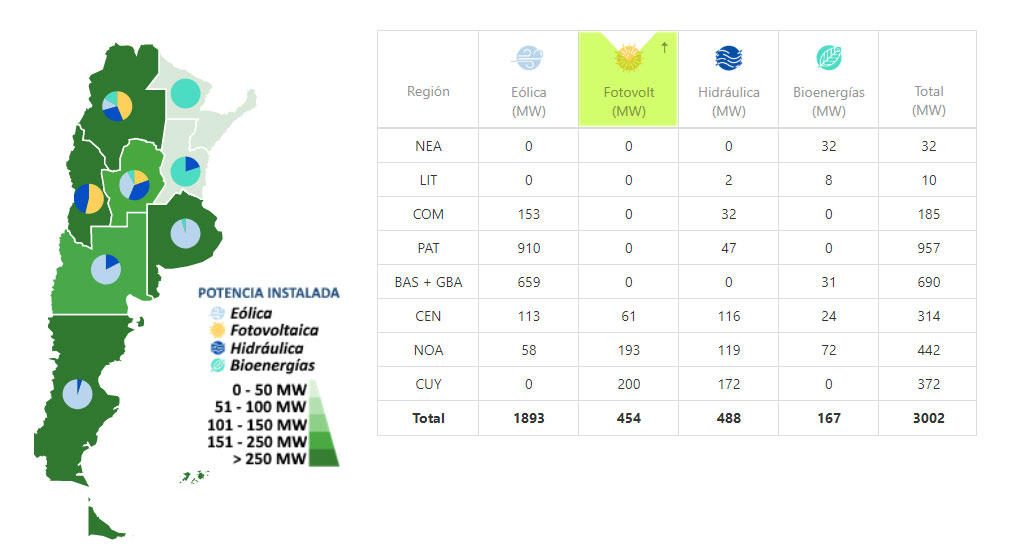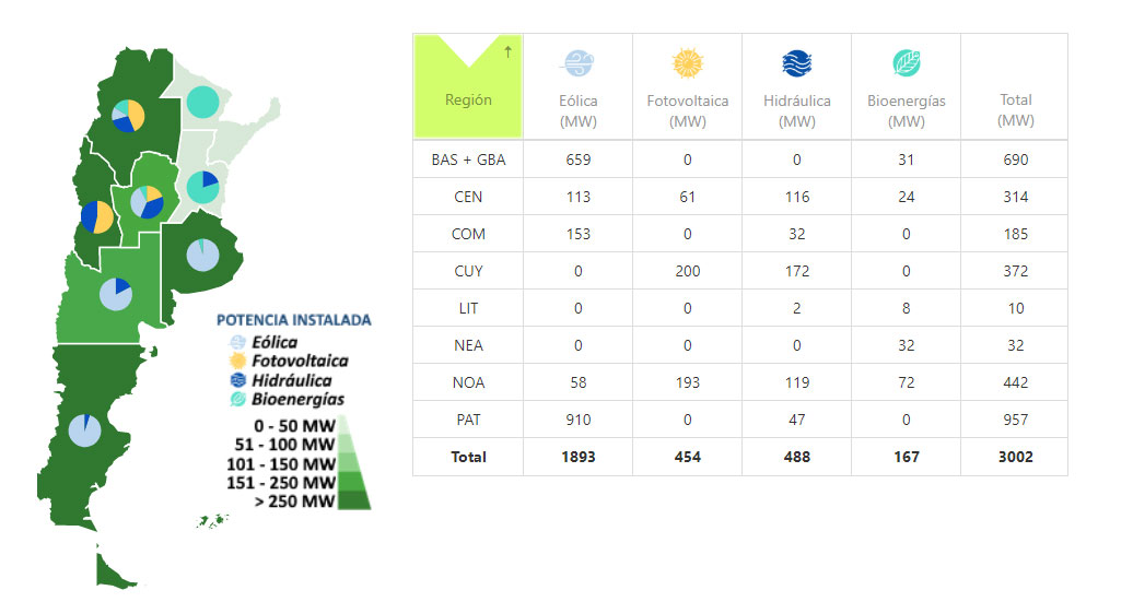 «Las instalaciones de grandes plantas generadoras en la Argentina, fueron impulsadas por la Ley de Energía renovables 27191«. Esta ley permitió que inversiones extranjeras participen de la generación de Energía en el MEM (mercado eléctrico mayorista).